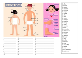 LE CORPS : | Feuille de travail pour pratiquer le vocabulaire concernant aux parties du corps. - Fiches FLE ![]() Voici les fiches de vocabulaire que les élèves glissent dans un porte-vues. ![]() | ||